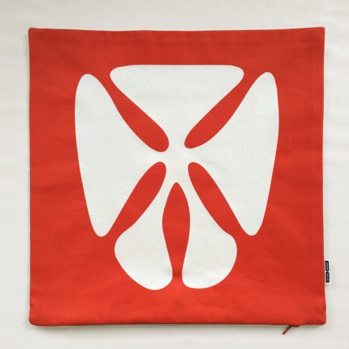The abstract shapes on this cushion were inspired by a marine animal, the so-called sand dollar… or more precisely, the skeleton of the sand dollar. Its fascinating symmetry invited us to play with the basic shape and create new variations.