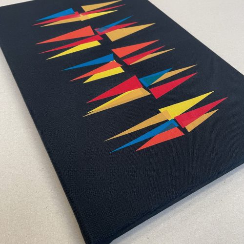 The brightly colored spikes are playfully arranged, yet rudimentarily symmetrical – a dynamic formation in the midst of order and chaos…
