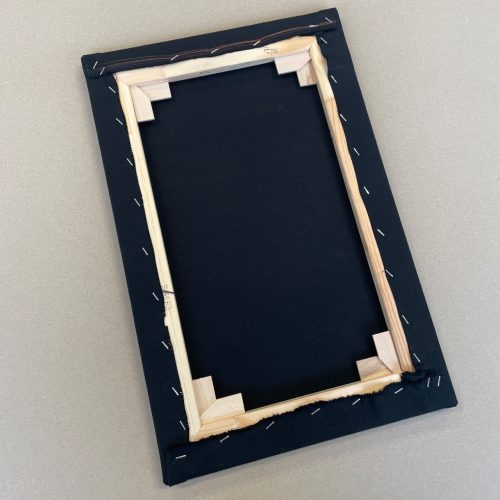 Five-color silkscreen on black panama, fixed on stretcher frame.