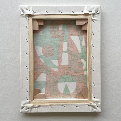 Zweifarbiger Siebdruck auf naturfarbenem Canvas, fixiert auf Keilrahmen.