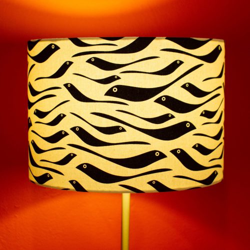 Unser klassisches Schwalben-Design nun auch als Lampenschirm. Durch den naturfarbenen Mollino-Stoff entsteht eine wohnliche Lichtatmosphäre und die Schwalben kommen im Dunklen besonders schön zur Geltung. Auch ohne Licht natürlich ein bezaubernder und sehr dekorativer Wohngegenstand.