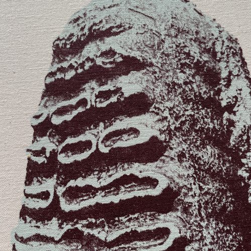 Zweifarbiger Siebdruck auf naturfarbenem Canvas, fixiert auf Keilrahmen – optional mit Schattenfugenrahmen.