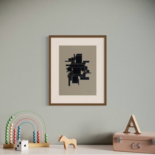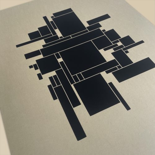 Einfarbiger schwarzer Siebdruck auf 300 g/m² Fotokarton.