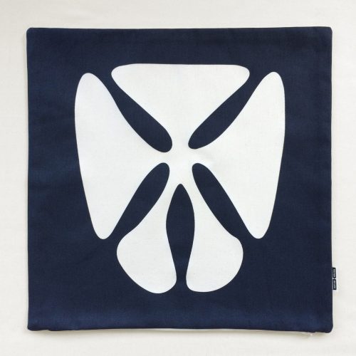 Bei den abstrakten Formen auf diesem Kissen haben wir uns von einem Meerestier, dem sogenannten Sanddollar inspirieren lassen… genauer gesagt vom Skelett des Sanddollars. Dessen faszinierende Symmetrie hat förmlich dazu eingeladen mit der Grundform weiterzuspielen und neue Variationen zu gestalten.