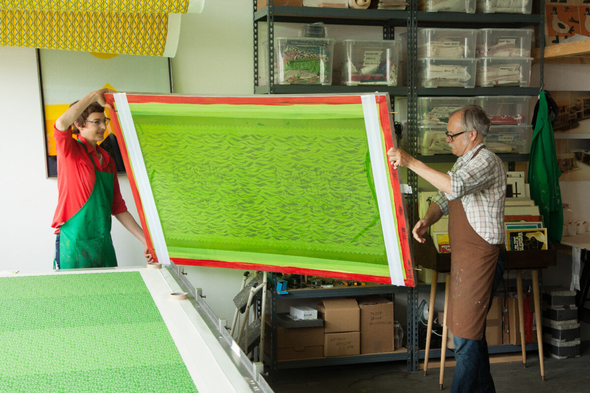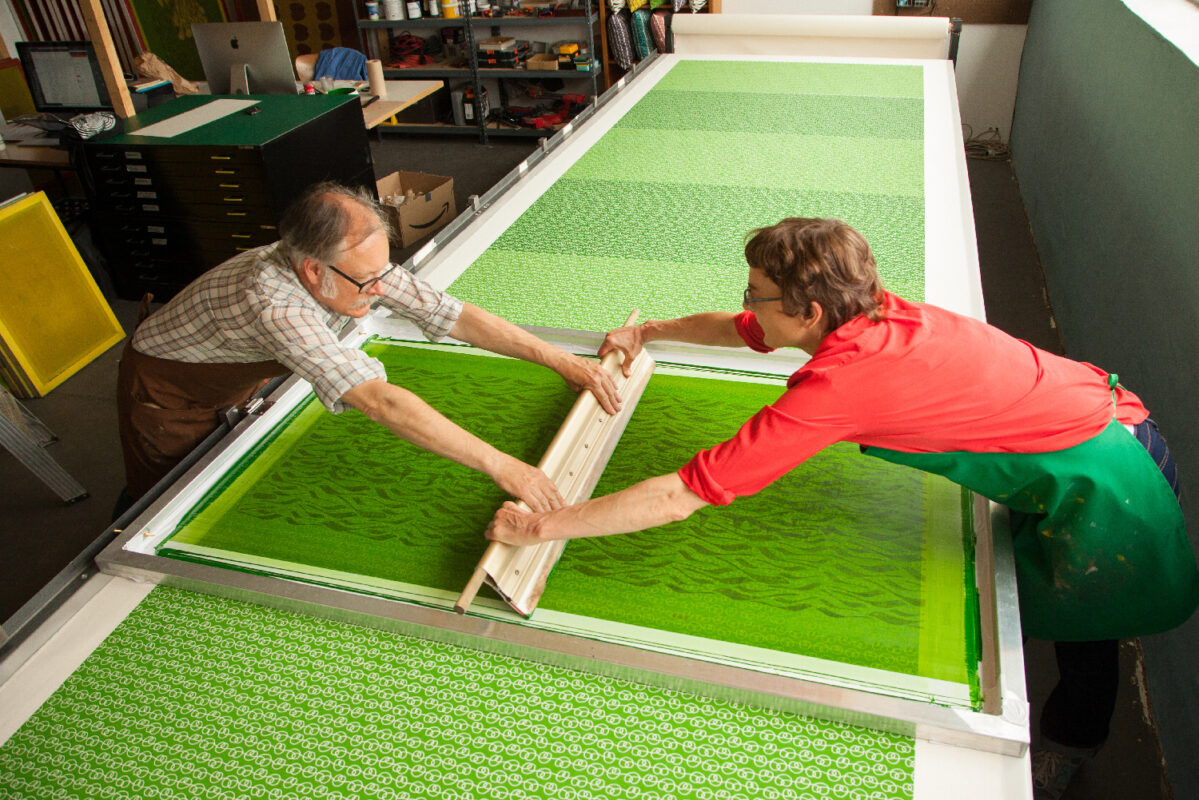 Wir sind Ellen Wagner & Axel Rössler und betreiben seit 2014 das Siebdruckstudio „Print now – Riot later“. Gemeinsam haben wir eine kleine feine Druckwerkstatt in Tucson/Arizona aufgebaut. Nach fünf Jahren in der staubigen Wüste ging es wieder zurück zu Freunden und Familie. In Maintal nahe Frankfurt konnten wir größere Räume beziehen und unsere Idee vom großformatigem Stoffdruck verwirklichen. Plötzlich waren riesige Motive und Muster möglich, genial!